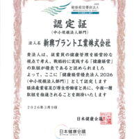 新興プラント工業㈱は、経済産業省が創設した健康経営の顕彰制度「健康経営優良法人2026(中小規模法人部門)」に認定されました。 社員が心身ともに健康で、安心して働ける環境づくりを大切にし社員がいきいきと働ける会社であり続 …